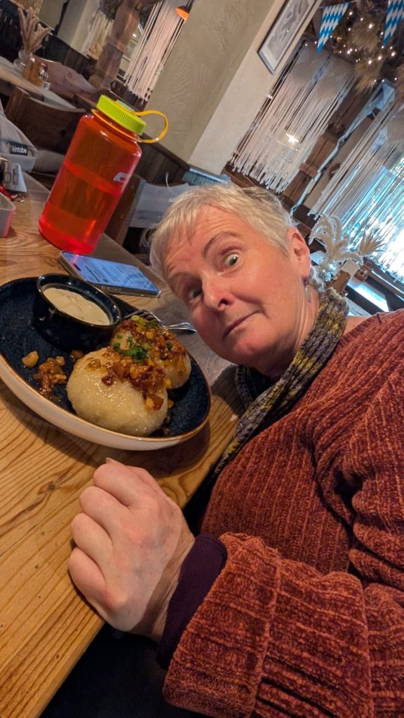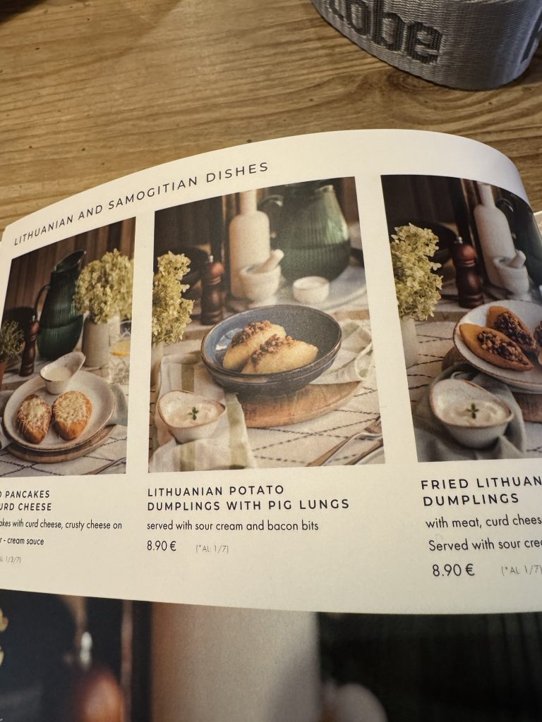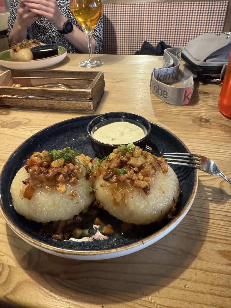 Liga was adamant that we had to try the potato dumplings. James, being Irish, needed no convincing, though we both drew the line at the pig lungs. We ordered a plate of two dumplings each, his filled with meat and mine with cheese.