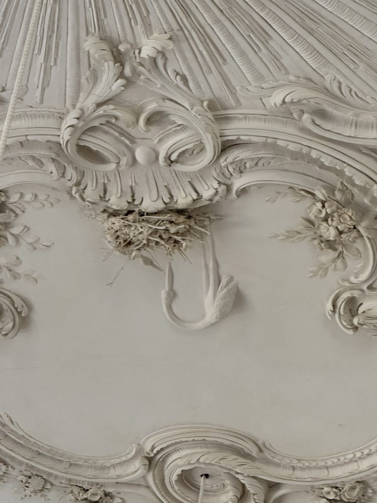 The stork’s nest in the middle of the ceiling was actual sticks and moss, just covered with plaster.
