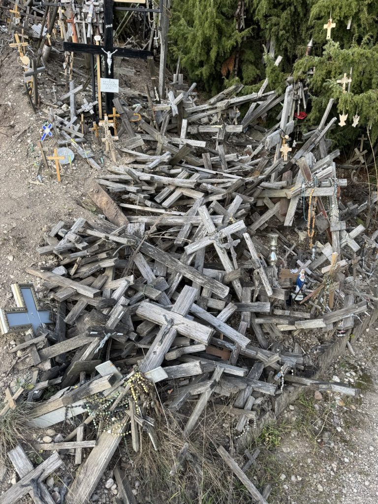 Then we were off to cross the border into Lithuania. James had mentioned something called the Hill of Crosses, so we thought we’d check it out.