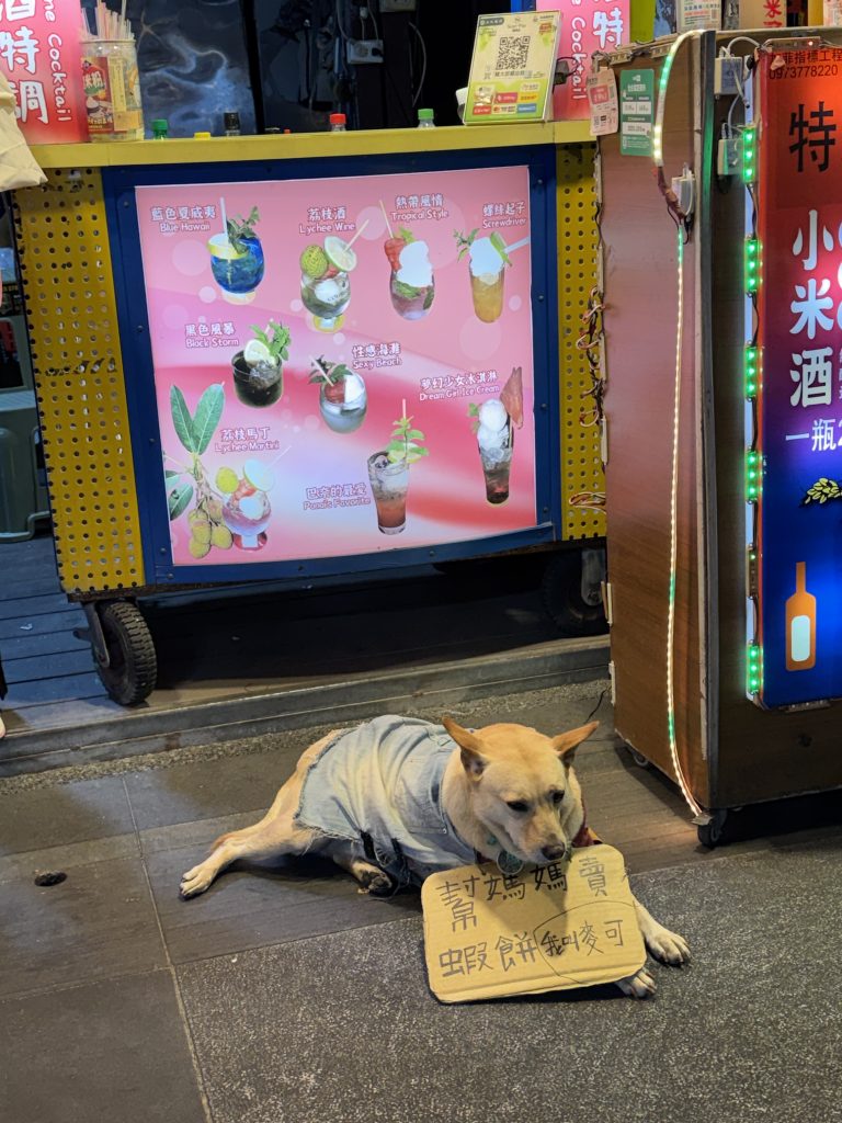 Our last stop for the day was the Hualien Night Market, where one clever stall holder trained her dog to help bring the punters in.