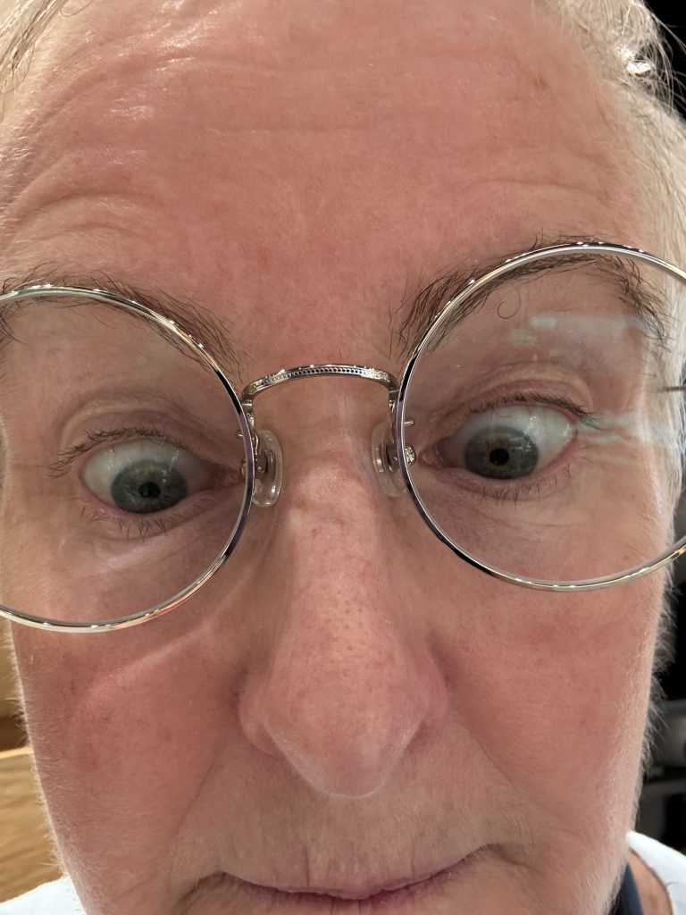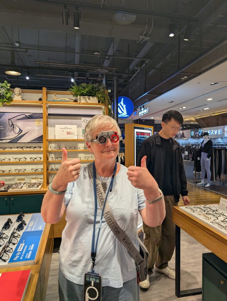 I decided that I wanted everyday glasses, as well as reading glasses, so here I am walking around the shop, seeing if the lenses were ok.